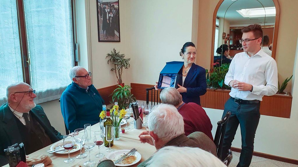 "Il Giovedì Santo, dopo un periodo molto travagliato, ho avuto una graditissima sorpresa: ero stata invitata a pranzo dall’Amico Aldo Lanfranchini e sono stata accolta da una dozzina di persone, riunite per festeggiarmi e donarmi una targa in cristallo, naturalmente a forma di libro: “A Piera Mazzone, Omni doctrina ornatissima, i Tuoi Amici ti onorano per tutto quello che fai per la Cultura Valsesiana”.