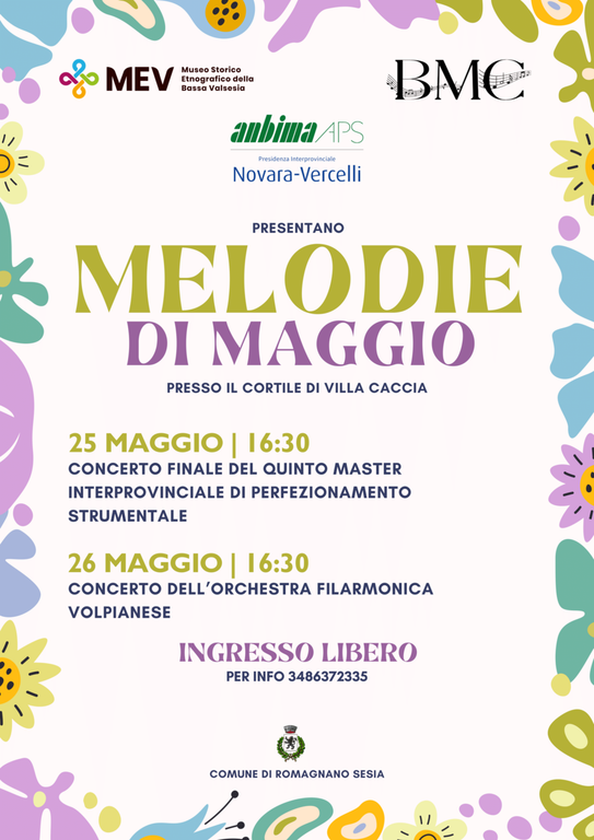Il 25 maggio alle ore 16:30 si terrà il Concerto finale del quinto master interprovinciale di perfezionamento strumentale mentre il 26 maggio sempre alle ore 16:30 ci sarà il Concerto dell'orchestra filarmonica volpianese per una due giorni all'insegna della musica a Villa Caccia.