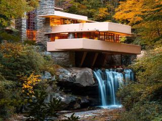 Casa Kaufmann è definita il manifesto dell’architettura organica, rappresentante di un accordo perfetto tra elementi naturali e artificiali. È infatti letteralmente poggiata su una cascata e per questo è considerata una struttura “impossibile”.