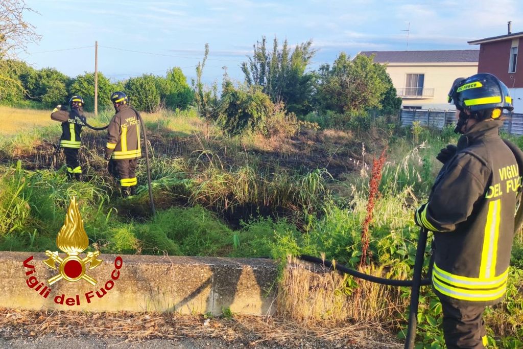 A Trino, oggi 10 giugno alle 20, i Vigili del Fuoco di Trino è intervenuta per spegnere le fiamme divampate tra le sterpaglie e rimettere in sicurezza l'area interessata.
