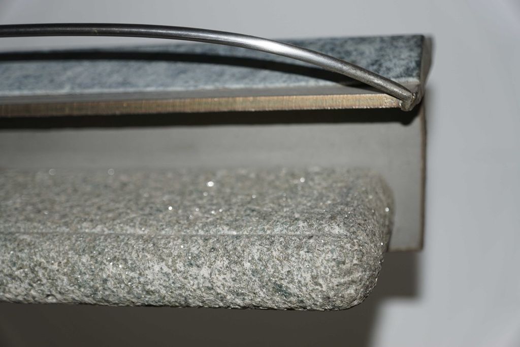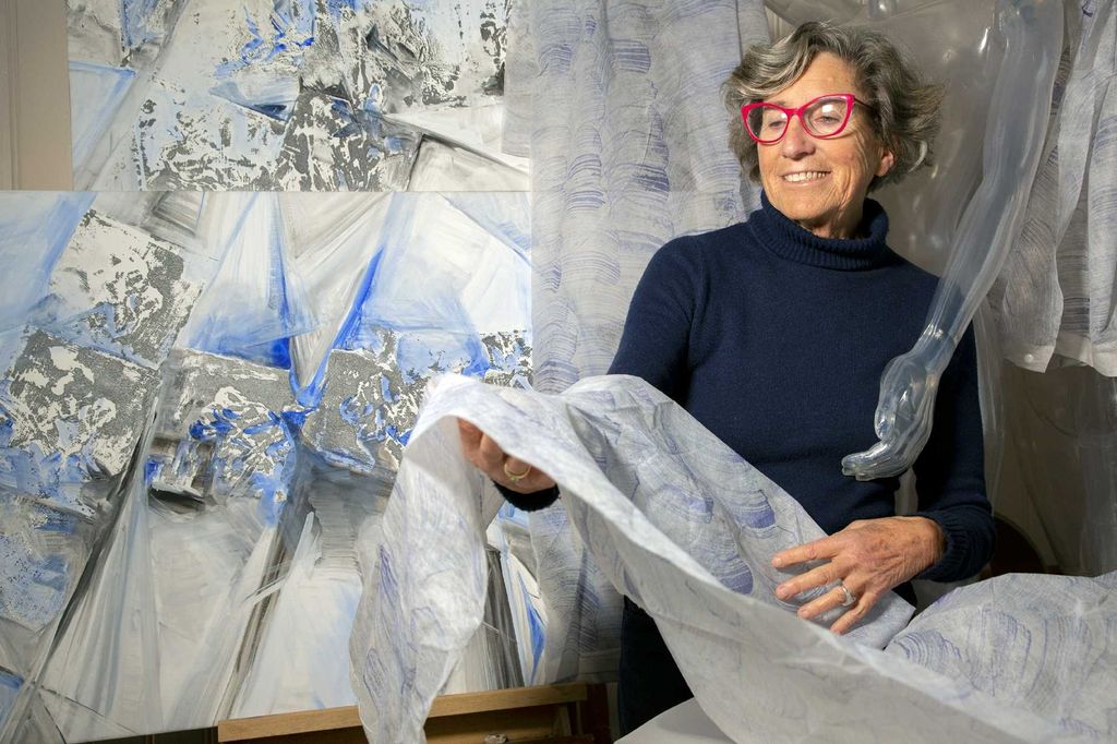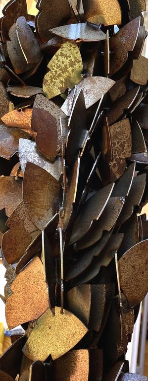 Marina Sasso vive e lavora a Torino, partecipa a mostre di scultura e grafica dal 1964, percepisce la scultura come processo di decantazione della forma, dove permangono trasfigurati ricordi e memorie di natura. Per Guardabosone ha creato: “Luoghi”, un’opera simbolica, caratterizzata da una grande tensione per la verticalità, con un chiaro riferimento alla sacralità dello spazio invisibile dell’incontro tra artista, opera e visitatore: “Costruzione, disposizione e relazione sono le coordinate operative sulle quali si sviluppa il mio lavoro. Ferro, acciaio, pietra, piombo, rame, terracotta, sono protagonisti di una scultura che privilegia la costruzione, il contrasto materico, la frontalità”.