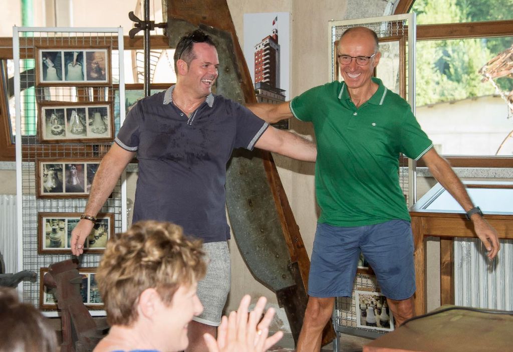 Matteo Segantin, Vice Presidente del Museo e Presidente dell'Associazione Sfasciacampane e l’artista Caterina D’Agostino, hanno introdotto il pomeriggio ricordando come tra i progetti del Museo rientri la realizzazione di un libro illustrato ed adatto ai bambini, con la storia delle campane Mazzola: “Si stanno cercando degli sponsor e ci aiutiamo con iniziative come la pesca miracolosa per riuscire a conquistare una delle tre opere a tema ciclistico, messe in palio”.