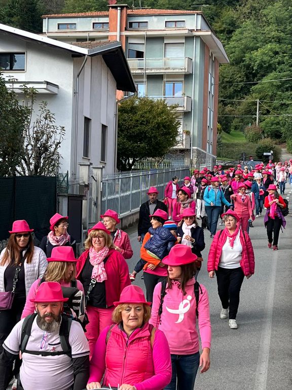 Pubblico delle grandi occasioni a Pray in occasione della Camminata in Rosa, andata in scena nel pomeriggio di oggi, 6 ottobre. Oltre 210 partecipanti per una lunga carovana rosa che ha percorso le vie principali del paese per un tragitto lungo quasi 3 chilometri.
