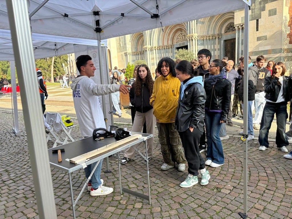 Nella giornata di mercoledì 30 ottobre le classi quinte dell’Istituto Tecnico Cavour e Professionale Lanino, insieme a studenti di altri istituti di Vercelli, hanno partecipato a un’attività educativa speciale in un a splendida location di fronte alla basilica di Sant’Andrea. L’iniziativa, organizzata dalla Motorizzazione civile di Vercelli, con il supporto della responsabile dell’Ufficio Motorizzazione Civile, Fiorella Salis, si è svolta dal palco del Truck Crash Test Experience, un grande autocarro attrezzato con simulatori di ribaltamento e impatto per sensibilizzare i ragazzi sui temi della sicurezza stradale.