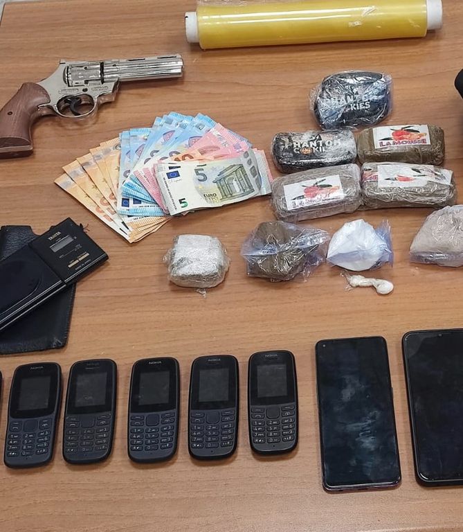 Nella circostanza, il reporter ha consegnato ai militari e agli agenti hashish (gr. 50,06) e cocaina (g. 1,12), abbandonati dall’arrestato durante la fuga. Il filmato realizzato dalla troupe – divulgato sulle principali piattaforme social e in serata in televisione - è stato acquisito quale ulteriore fonte di prova. A completamento delle attività svolte, i Carabinieri e gli operatori della Polizia di Stato, nel corso della serata, con l’ausilio del reporter, hanno ricostruito il percorso di fuga del soggetto e quindi svolto una più ampia e minuziosa attività di ricerca nella vasta area verde dove si erano svolti i fatti ed hanno rinvenuto, all’interno di uno zaino ritrovato in quell’area gr. 564,4 di hashish, gr. 57,05 di eroina, gr. 21,43 di cocaina, un coltello, un bilancino elettronico e un revolver privo di tappo rosso, perfetta riproduzione dell’originale, oltre a euro 570,00 in banconote di vario taglio, sequestrandoli.