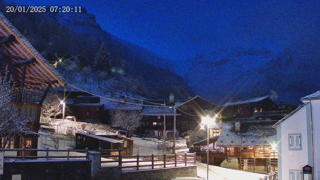 Un buongiorno con la neve in Valsesia. Nei piccoli borghi da Scopello fino ad Alagna Valsesia stamattina pendii e strade innevate.