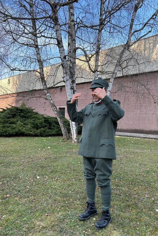 Accompagnati da un Alpino (Christian Ferri) si passava al magazzino, dove era stata allestita una trincea e si assisteva al dialogo tra due soldati di guardia (Fabrizio Barbero e Luca Meo) un “Savoia” e un “Napoli” che indossavano le divise di produzione biellese, ottime per riparare dalla pioggia, dal vento e dal freddo, ma: “Le pallottole, quelle, le lasciano passare: nemmeno le divise degli ufficiali, le penne bianche, che sono di qualità migliore, riescono nel compito impossibile”.