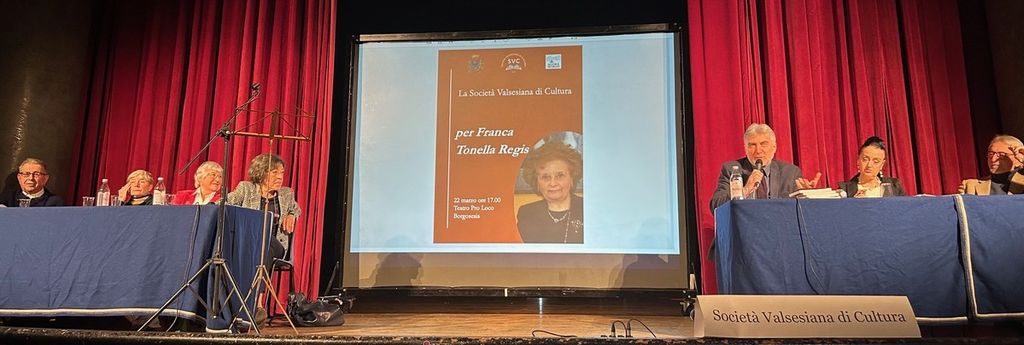 Franca Tonella Regis, scomparsa nell’agosto 2024, ha lasciato un grande vuoto nella Cultura valsesiana: non c’era argomento o personaggio del quale non si fosse occupata, studiandolo, raccogliendo documenti, intervenendo sempre in modo puntuale e appropriato, mai fazioso. Sabato 22 marzo al Teatro Pro Loco di Borgosesia, la Società Valsesiana di Cultura, con il supporto del Comune e della Consulta, ha organizzato un incontro animato da più voci di amici e collaboratori per ricordare la Persona determinata e accogliente, l’innovativa Presidente della Società Valsesiana di Cultura per quarant’anni, l’insegnante che per oltre trent’anni ha insegnato Italiano e Latino al Liceo “Gaudenzio Ferrari” di Borgosesia, trasmettendo e formando gli allievi attraverso le discipline umanistiche, l’instancabile organizzatrice di incontri, convegni, mostre.