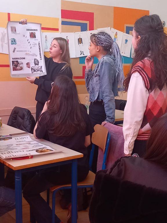Nell’arco di un’ora e mezza circa l’esperta della Fondazione Sandretto Rebaudengo ha raccontato e illustrato alcuni esempi di arte pubblica. La lingua inglese è stato il mezzo per veicolare la presentazione alternato all'italiano per accertare la comprensione dei concetti più complessi. Partendo da opere di artisti italiani e internazionali, come Alberto Garutti e Jenny Holzer, e luoghi come la High Line di New York i ragazzi hanno scoperto cos’è l’Arte Pubblica, quali messaggi veicola e come questi influenzano l’essere cittadini. Al termine, suddivisi in gruppi, è stato elaborato un lavoro per riflettere e approfondire il tema dell’arte che interviene nello spazio pubblico, poi condiviso con i compagni e la relatrice.