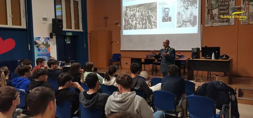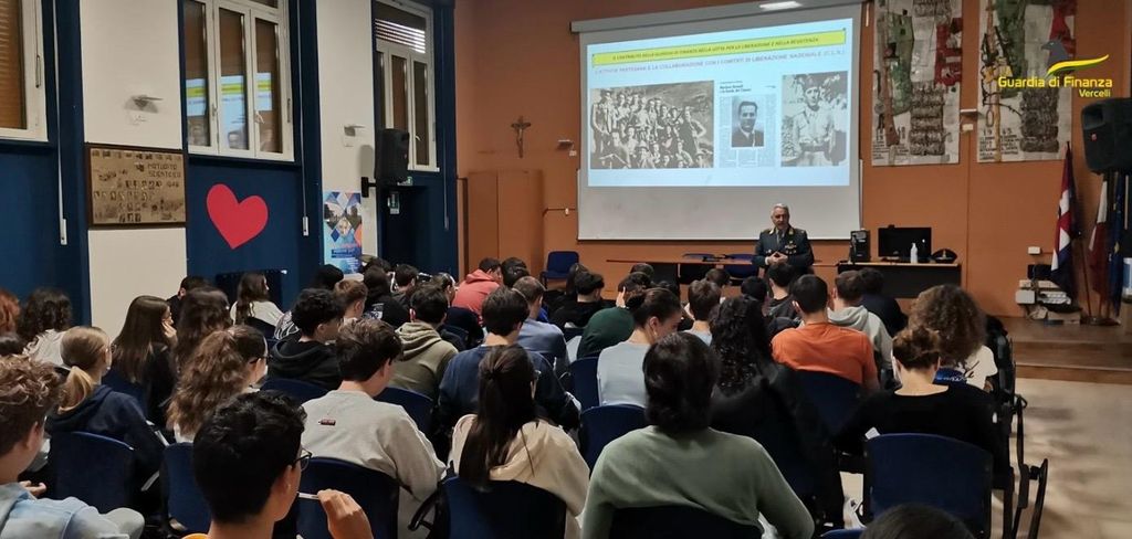 Nell’imminenza della solenne ricorrenza degli 80 anni dalla Liberazione dell’Italia dal giogo nazifascista, il Comando Provinciale della Guardia di Finanza Vercelli e la Direzione Scolastica dell’I.I.S. “A. Avogadro”, d’intesa con l’Ufficio Scolastico di Area Territoriale, hanno organizzato un incontro con gli studenti delle classi V del Liceo Scientifico sul tema “1945-2025. Il contributo della Guardia di Finanza nella Lotta di Liberazione e nella Resistenza”.
