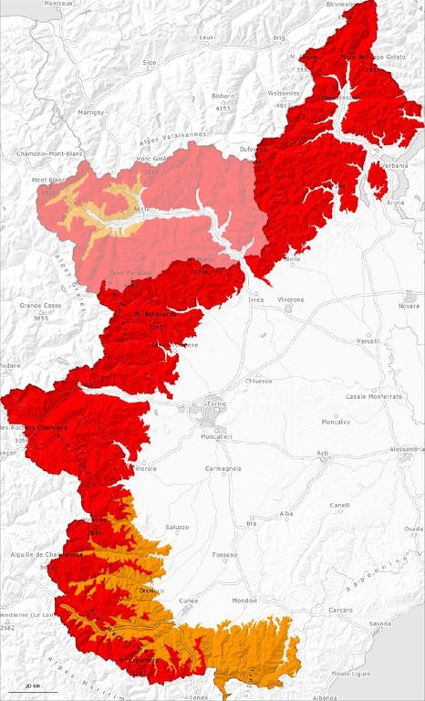 In allegato la mappa del pericolo valanghe previsto in Piemonte venerdì 18 aprile.