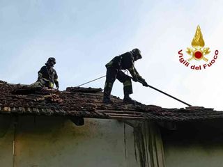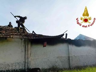 Le squadre dei Vigili del Fuoco hanno provveduto alla completa estinzione del fuoco che aveva avvolto una parte della tettoia della cascina che nel frattempo è crollata, e poi si sono occupate del raffreddamento delle travi rimanenti e allo smassamento di ciò che era rimasto per evitare il reinnesco.