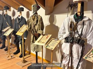Ad accoglierci e guidarci nella visita è Bruno Epis, segretario e responsabile della struttura museale della Sezione. Con passione ci guida tra gli oggetti esposti, provenienti dai due conflitti mondiali: elmetti, uniformi, lettere dal fronte e strumenti da campo, ognuno con una storia da raccontare. Particolarmente suggestiva la sala che raccoglie numerose uniformi d’epoca, tra cui spicca quella da alpino sciatore, simbolo delle difficili condizioni affrontate durante la "guerra in alta quota".
