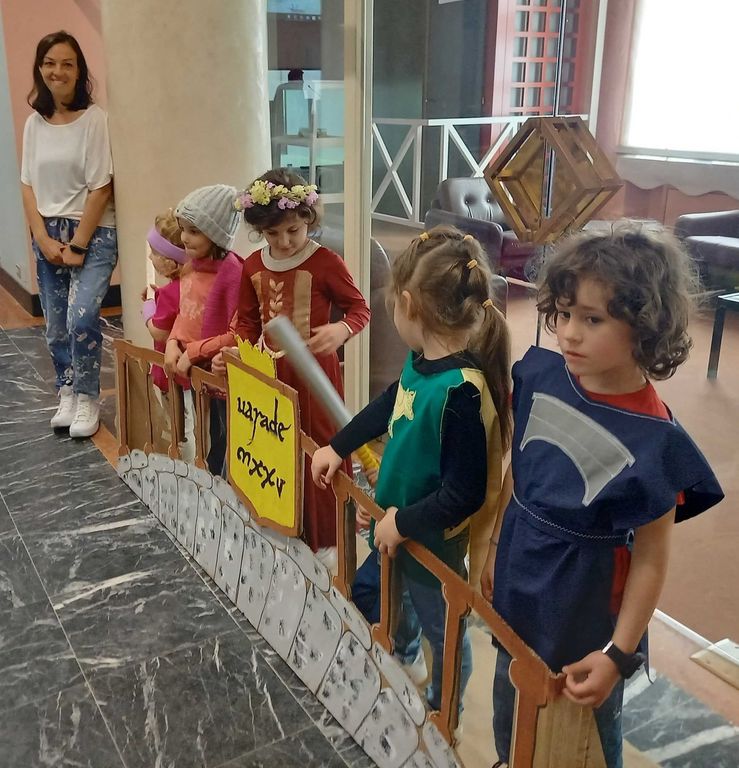 Bruna Macchi e Giovanna Riva, referenti per Scuola dell’Infanzia Parrocchiale San Vincenzo, hanno spiegato come con i bambini siano riusciti ad unire i due eventi del 2025: il Millennio e Varallo Città dello Sport, creando una recita animata da canti e realizzando alcuni lavori manuali. I bambini dell’ultimo anno hanno “fabbricato” la pergamena sporcando il foglio con il caffè ed inventando i loro monogrammi, sul modello di quello dell’imperatore Corrado II.