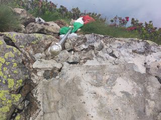 A segnalare l'accaduto un gruppo di persone, giunte sul posto per ammirare le bellezze del paesaggio. Tutto farebbe pensare ad un atto vandalico, anche perchè l'asta della bandiera è stata completamente divelta dalla base su cui poggiava. La stessa targa si trovava a pochi metri di distanza, in mezzo alla vegetazione, spezzata in due. A detta di alcuni pare proprio che l'atto sia stato compiuto nelle ultime settimane.