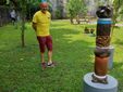 Le “sculture totemiche” di Fabio Nicola sono opere ad andamento verticale, realizzate utilizzando un’asta lungo la quale si sovrappongono elementi compositivi mobili, separati da dischi colorati per segnare il cambiamento di cultura e di stile: si passa da elementi di arte africana a decori in stile settecentesco, a incastri contemporanei, per sottolineare il sommarsi di influenze e tempi nelle vite individuali, con esiti del tutto differenti.