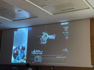«Il suo secondo intervento – spiega il dottor Rametta – è stato eseguito in diretta e trasmesso come importante momento formativo durante il congresso nazionale di cardiologia interventistica “Rock and Talk”, organizzato dal gruppo Humanitas. Il congresso era focalizzato sul trattamento delle lesioni calcifiche coronariche complesse. In sala operatoria a Vercelli, mentre Fabrizio Ugo, Mohamed Abdirashid, Chiara Cavallino, Ludovica Maltese e Marco Franzino eseguivano l’intervento e i colleghi collegati seguivano le varie fasi dell’operazione, Bruno era sveglio e osservava con un po’ di stupore lo schermo e le attività dei medici intorno a lui».