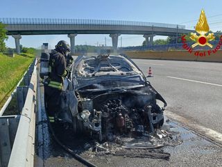 Nella mattina di oggi, 22 giugno, intorno alle 10, i Vigili del Fuoco del distaccamento volontario di Santhià sono giunti sull'autostrada A4, in direzione Torino, al km 48+600, nel comune di Santhià, per un incendio scoppiato all'interno di un'autovettura. Al loro arrivo, il mezzo era completamente avvolto dalle fiamme e le persone erano all'esterno in sicurezza. L'intervento della squadra è valso alla completa estinzione del rogo. Presenti sul posto anche la Polizia Stradale e il personale della Viabilità Autostradale.