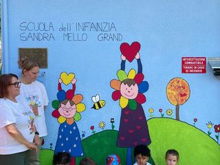 Il Sindaco Fabrizio Bonaccio e l’Assessore all’Istruzione Gianna Poletti hanno partecipato con immenso piacere, martedì 24 giugno, all’inaugurazione del coloratissimo murales realizzato alla Scuola dell’Infanzia Mello Grand: