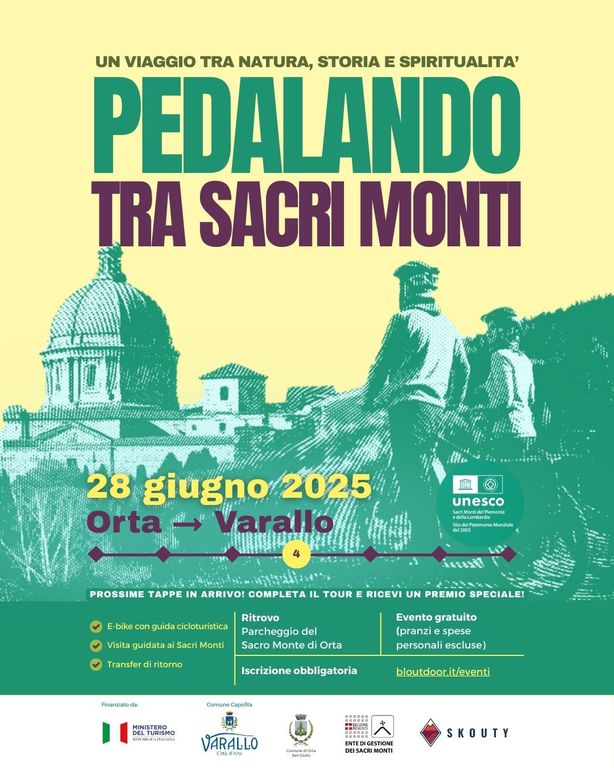 Si pedalerà per circa 40 km con e-bike e guida cicloturistica, attraversando paesaggi spettacolari che dal blu del lago d’Orta condurranno al verde della Valsesia. Il percorso prevede un tratto costiero lungo il lago, la salita al passo della Colma e una discesa panoramica verso Varallo, con visita guidata al Sacro Monte a cura di Elena Rame, responsabile della promozione e gestione conservativa dei Sacri Monti. A fine giornata è previsto un transfer gratuito per il ritorno a Orta. Gli orari di partenza e i dettagli logistici saranno comunicati agli iscritti al termine della procedura di iscrizione.