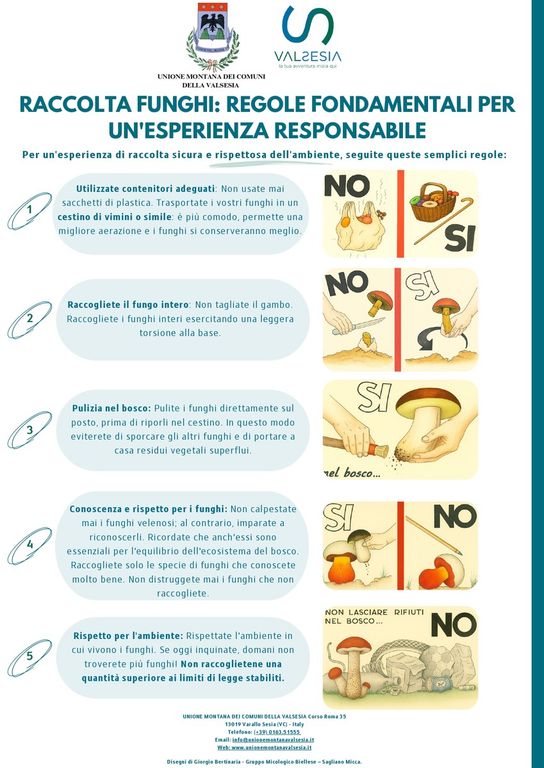 L’Unione Montana Valsesia mette a disposizione di tutti coloro che amano raccogliere i funghi un vademecum di estrema importanza per coniugare all’attività di raccolta anche la dovuta attenzione all’ambiente naturale.