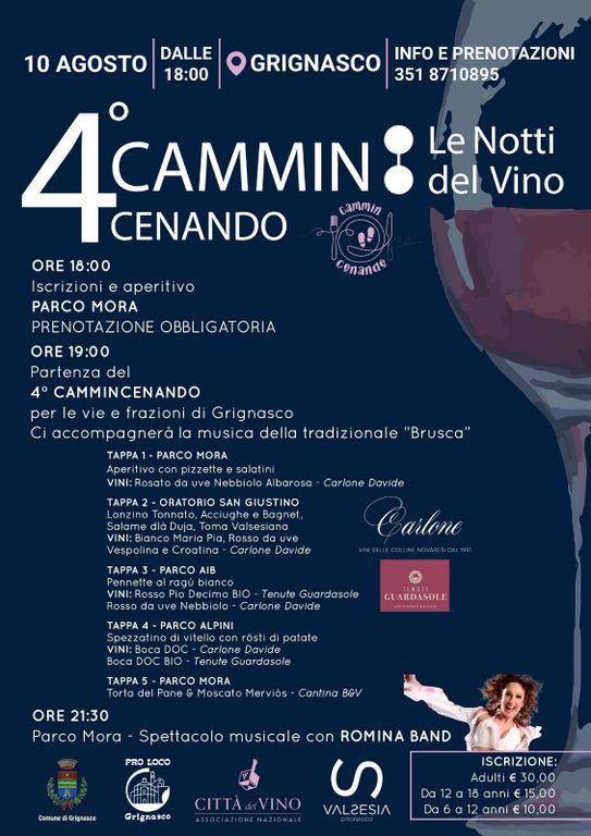 Domenica 10 agosto Grignasco ospiterà la quarta edizione di “Cammincenando”, l’evento sportivo e gastronomico che unisce movimento, musica e convivialità. Il ritrovo è fissato alle ore 18:00 presso il Parco Mora, punto di partenza della serata.