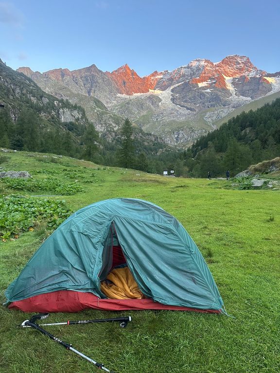 Partito lo scorso 18 maggio dal Friuli, a pochi chilometri dal confine sloveno, Terenziani ha già percorso oltre 1.750 chilometri lungo l’arco alpino con quasi 90 mila metri di dislivello positivo. Nei giorni scorsi ha raggiunto Macugnaga, in Ossola, dove ha concesso a sé stesso una giornata di riposo, prima di affrontare l’ascesa al passo del Turlo e l’arrivo ad Alagna. “Vorrei salire anche alla Capanna Margherita”, racconta, sempre senza mezzi, pernottando in tenda davanti al rifugio Mantova.