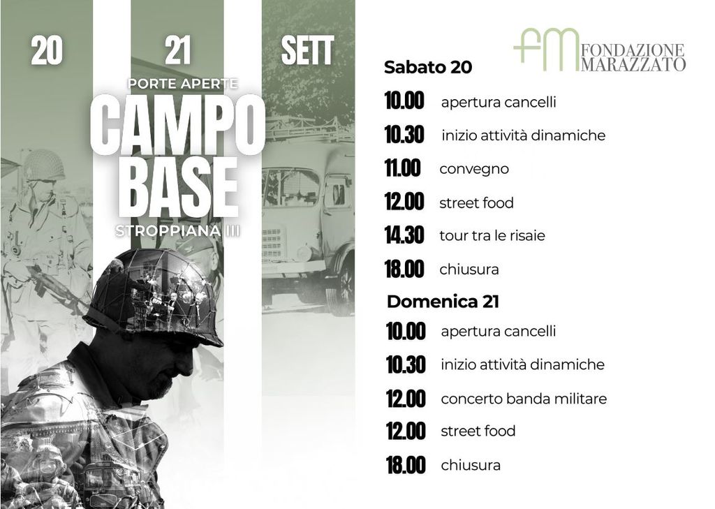 ● LA TERZA EDIZIONE DEL “PORTE APERTE” CAMPO BASE STROPPIANA, IN PROGRAMMA IL 20 E 21 SETTEMBRE, CONFERMA L’APPREZZATA FORMULA CHE UNISCE CULTURA E DIVERTIMENTO