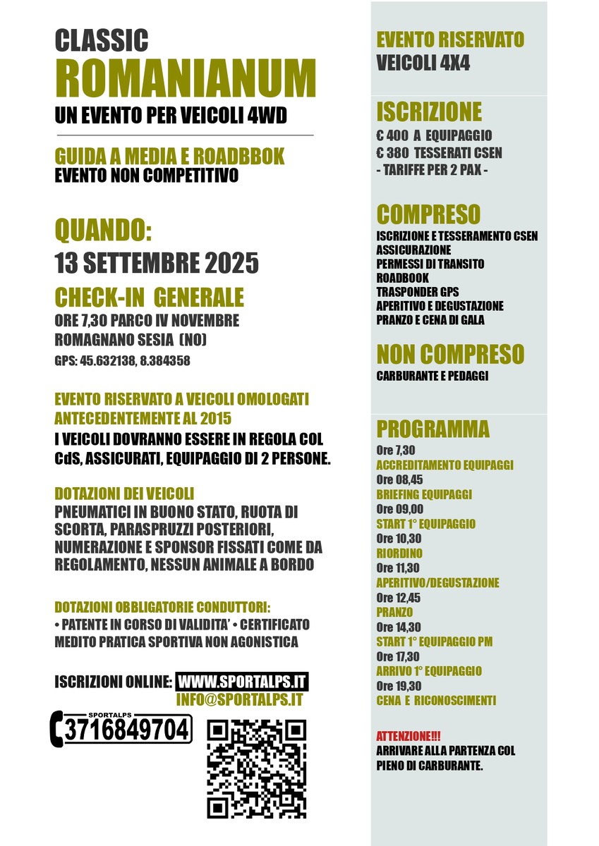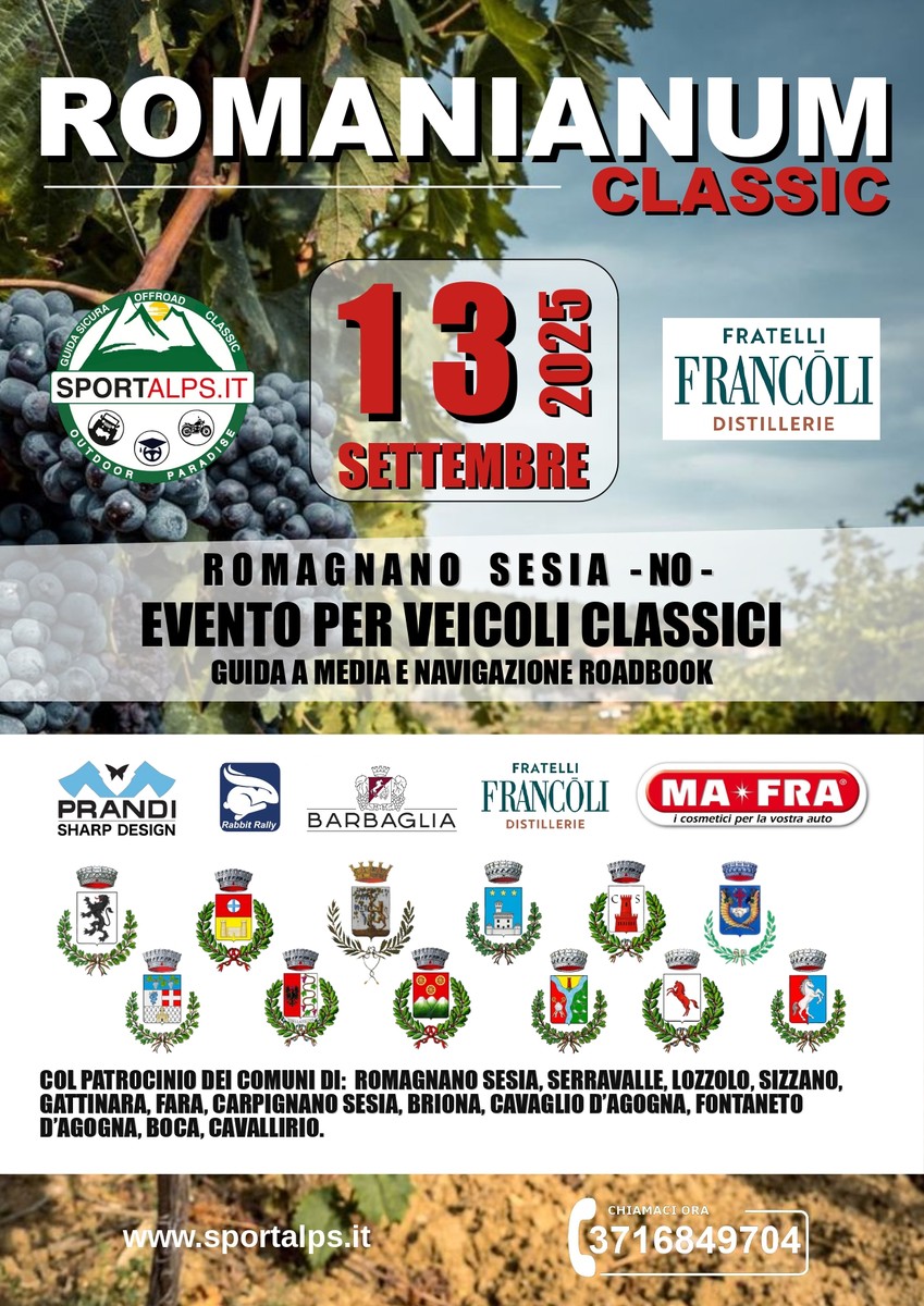 Sabato 13 settembre, si terrà l’evento Classic Romanianum, a Romagnano Sesia, un evento rivolto ai veicoli classici.