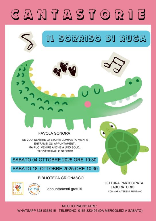 Per ulteriori informazioni sulle attività della biblioteca, visita le pagine Facebook (urly.it/31c6d1) e Instagram della Biblioteca di Grignasco (https://www.instagram.com/bibliotecagrignasco/)