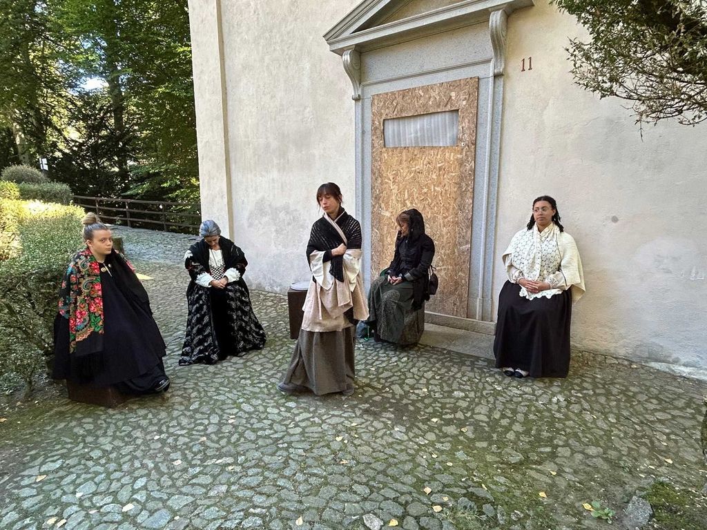 Domenica 5 ottobre il Gran Teatro Montano per un giorno è tornato ad essere un grande spettacolo popolare, animato da chi lo ideò, Fra’ Bernardino Caimi, agli artisti che lo realizzarono, all’architetto Galeazzo Alessi e al vescovo Bascapè che impresse una svolta nella progettazione, ma reso vivo anche dai “fruitori”: visitatori, nobili signore e popolane. Persino le statue hanno ripreso vita raccontando le loro vicende e le loro tribolazioni: da Baldassarre, il re moro che non trovava la mirra, a Eva retrocessa ad armigero baffuto, all’attricetta in cerca d’ingaggio per la parte della “Santa Americana”, in realtà la Samaritana al pozzo. Al Monte si è riacceso il forno per modellare le statue, di fronte alla Cappella degli innocenti la conversazione tra dame sorde come campane sortisce effetti umoristici, mentre il mercato, sotto il complesso di Nazaret, con le “pome di Parone belle e buone” viene deplorato dal vescovo Bascapè, che intima alle venditrici di andarsene e per il futuro non osare varcare la porta del sacro recinto. All’Albergo del Pellegrino l’oste in caccia di clienti propone il suo di albergo, Albergo Sacro Monte, per gustare: “Cibi caldi, freddi e anche tiepidi”. Al Sepolcro l’elegante turista inglese che aveva perso il marito si affida alle dubbie capacità di una zingara musicante. Sul sagrato della Basilica un venditore d’indulgenze, che si era “riciclato” dopo che il commercio delle reliquie non era più redditizio, s’appellava alla generosità dei visitatori. Daniele Conserva e Luca Perrone, ideatori e registi dello spettacolo hanno scelto di adottare un registro sospeso tra il comico e il surreale, facendo riemergere dai secoli le figure degli artisti più importanti che hanno lavorato al Sacro Monte, da Gaudenzio a Galeazzo Alessi, ai fratelli D’Enrico, evocandoli attraverso il loro lato più umano, per far emergere la vis comica dell’arte popolaresca che è insita nel teatro da strada, cui la rappresentazione si ispira. “L’inquieto Monte della malora. Antichi racconti e strani incontri sul Monte Sacro” è una suggestiva rievocazione storica teatralizzata, ideata e realizzata dagli “Osti della malora” e l’Istituto Alberghiero G. Pastore, che ha impegnato un “cast” di settanta persone: trenta studenti dell’Alberghiero, venti attori e dieci al servizio reception, nove docenti e trentuno volontari varallesi e genti da tutta la Valsesia, insieme per vivere e far vivere la storia teatralizzata del Monte e della Comunità Varallese. Gli attori che hanno dato vita alle dodici scene sono stati quarantacinque, perché le dieci “Guide” in realtà erano esse stesse interpreti che coinvolgevano il pubblico, introducendolo alle follie di una giornata popolata dai personaggi più stravaganti e truffaldini, che si muovevano all’interno di scenografie ideate e realizzate da Marcello Moscatelli e Gianpiero Cominetti, abbigliati con i costumi scelti da Annalisa Nardella. Grazie anche ai responsabili della logistica: Tamara Delconte, Giovanna Gattoni e Antonella Marcon, lo spettacolo è stato perfetto anche dal punto di vista organizzativo, non c’erano buchi nella “catena di trasmissione” tra un quadro e l’altro, e il percorso si è concluso dove era iniziato. Dal mattino alle 10 alla sera alle 17, Piazza Testori, antistante l’ingresso del Sacro Monte era affollata di persone che si prenotavano per la visita, accolti da un’organizzata réception, coordinata dall’insegnante Tamara Delconte: ai partecipanti veniva assegnato un braccialetto colorato che contraddistingueva i vari gruppi. Nell’attesa si potevano gustare le specialità degli “Osti della malora”: deliziose tortine con una gelatina speziata di lamponi e fragranti meringhe, sfornate dalle cucine dell’Istituto Alberghiero, sotto la sapiente guida dello chef Giorgio Anselmetti. Il bilancio della giornata è stato particolarmente positivo: diciotto visite, con la partecipazione ufficiale di novecento persone, che in realtà erano di più perché, spesso, lungo il percorso, si sono uniti altri visitatori del Sacro Monte, incuriositi da quella “giornata particolare”. L’evento alle soglie dell’autunno è ormai un appuntamento atteso: le persone provengono da Varallo, dalla Valsesia, ma anche da molto più lontano: Torino, Milano, la Svizzera. Hanno partecipato anche sessanta giovani che suonano nella Banda Rappresentativa Giovanile ANBIMA della Provincia di Torino, che erano venuti a Varallo per il gemellaggio con la corrispondente formazione musicale delle Province di Novara e Vercelli. Valentina Griselda, Segretaria e musicista della Banda Musicale Città di Varallo, che li ha accompagnati, ha riscontrato l’entusiasmo dei giovani musicisti per questa rappresentazione che ha consentito loro di vedere un Sacro Monte vivo e animato. Questo Progetto, ricordano gli Insegnanti dell’Istituto Alberghiero, è nato per assolvere a tre fondamentali necessità didattiche: “Far conoscere ai ragazzi il loro territorio, far capire come si organizzino determinati eventi, migliorare l’aspetto comunicativo con il turista o il visitatore, imparando a relazionarsi con il pubblico. Le classi del settore Accoglienza: terza, quarta e quinta, hanno aderito con entusiasmo, trasformandosi in attori, comparse, guide e addetti al ricevimento, vivendo attivamente il progetto. Gli studenti di cucina hanno preparato delle deliziose crostatine monoporzione che sono andate presto esaurite”. Gli organizzatori, il gruppo 'Osti della Malora' e l'Istituto Alberghiero 'G. Pastore', ringraziano il pubblico per la fiducia, per l’entusiasmo trasmesso, che ha incoraggiato e rassicurato anche i più timidi, per le generose offerte che aiuteranno a tenere viva questa manifestazione, il personale docente e non docente, i volontari, tutte le persone che, pur non essendo direttamente coinvolte, si sono rese disponibili in modo assolutamente disinteressato e gratui