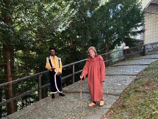 Domenica 5 ottobre il Gran Teatro Montano per un giorno è tornato ad essere un grande spettacolo popolare, animato da chi lo ideò, Fra’ Bernardino Caimi, agli artisti che lo realizzarono, all’architetto Galeazzo Alessi e al vescovo Bascapè che impresse una svolta nella progettazione, ma reso vivo anche dai “fruitori”: visitatori, nobili signore e popolane. Persino le statue hanno ripreso vita raccontando le loro vicende e le loro tribolazioni: da Baldassarre, il re moro che non trovava la mirra, a Eva retrocessa ad armigero baffuto, all’attricetta in cerca d’ingaggio per la parte della “Santa Americana”, in realtà la Samaritana al pozzo. Al Monte si è riacceso il forno per modellare le statue, di fronte alla Cappella degli innocenti la conversazione tra dame sorde come campane sortisce effetti umoristici, mentre il mercato, sotto il complesso di Nazaret, con le “pome di Parone belle e buone” viene deplorato dal vescovo Bascapè, che intima alle venditrici di andarsene e per il futuro non osare varcare la porta del sacro recinto. All’Albergo del Pellegrino l’oste in caccia di clienti propone il suo di albergo, Albergo Sacro Monte, per gustare: “Cibi caldi, freddi e anche tiepidi”. Al Sepolcro l’elegante turista inglese che aveva perso il marito si affida alle dubbie capacità di una zingara musicante. Sul sagrato della Basilica un venditore d’indulgenze, che si era “riciclato” dopo che il commercio delle reliquie non era più redditizio, s’appellava alla generosità dei visitatori. Daniele Conserva e Luca Perrone, ideatori e registi dello spettacolo hanno scelto di adottare un registro sospeso tra il comico e il surreale, facendo riemergere dai secoli le figure degli artisti più importanti che hanno lavorato al Sacro Monte, da Gaudenzio a Galeazzo Alessi, ai fratelli D’Enrico, evocandoli attraverso il loro lato più umano, per far emergere la vis comica dell’arte popolaresca che è insita nel teatro da strada, cui la rappresentazione si ispira. “L’inquieto Monte della malora. Antichi racconti e strani incontri sul Monte Sacro” è una suggestiva rievocazione storica teatralizzata, ideata e realizzata dagli “Osti della malora” e l’Istituto Alberghiero G. Pastore, che ha impegnato un “cast” di settanta persone: trenta studenti dell’Alberghiero, venti attori e dieci al servizio reception, nove docenti e trentuno volontari varallesi e genti da tutta la Valsesia, insieme per vivere e far vivere la storia teatralizzata del Monte e della Comunità Varallese. Gli attori che hanno dato vita alle dodici scene sono stati quarantacinque, perché le dieci “Guide” in realtà erano esse stesse interpreti che coinvolgevano il pubblico, introducendolo alle follie di una giornata popolata dai personaggi più stravaganti e truffaldini, che si muovevano all’interno di scenografie ideate e realizzate da Marcello Moscatelli e Gianpiero Cominetti, abbigliati con i costumi scelti da Annalisa Nardella. Grazie anche ai responsabili della logistica: Tamara Delconte, Giovanna Gattoni e Antonella Marcon, lo spettacolo è stato perfetto anche dal punto di vista organizzativo, non c’erano buchi nella “catena di trasmissione” tra un quadro e l’altro, e il percorso si è concluso dove era iniziato. Dal mattino alle 10 alla sera alle 17, Piazza Testori, antistante l’ingresso del Sacro Monte era affollata di persone che si prenotavano per la visita, accolti da un’organizzata réception, coordinata dall’insegnante Tamara Delconte: ai partecipanti veniva assegnato un braccialetto colorato che contraddistingueva i vari gruppi. Nell’attesa si potevano gustare le specialità degli “Osti della malora”: deliziose tortine con una gelatina speziata di lamponi e fragranti meringhe, sfornate dalle cucine dell’Istituto Alberghiero, sotto la sapiente guida dello chef Giorgio Anselmetti. Il bilancio della giornata è stato particolarmente positivo: diciotto visite, con la partecipazione ufficiale di novecento persone, che in realtà erano di più perché, spesso, lungo il percorso, si sono uniti altri visitatori del Sacro Monte, incuriositi da quella “giornata particolare”. L’evento alle soglie dell’autunno è ormai un appuntamento atteso: le persone provengono da Varallo, dalla Valsesia, ma anche da molto più lontano: Torino, Milano, la Svizzera. Hanno partecipato anche sessanta giovani che suonano nella Banda Rappresentativa Giovanile ANBIMA della Provincia di Torino, che erano venuti a Varallo per il gemellaggio con la corrispondente formazione musicale delle Province di Novara e Vercelli. Valentina Griselda, Segretaria e musicista della Banda Musicale Città di Varallo, che li ha accompagnati, ha riscontrato l’entusiasmo dei giovani musicisti per questa rappresentazione che ha consentito loro di vedere un Sacro Monte vivo e animato. Questo Progetto, ricordano gli Insegnanti dell’Istituto Alberghiero, è nato per assolvere a tre fondamentali necessità didattiche: “Far conoscere ai ragazzi il loro territorio, far capire come si organizzino determinati eventi, migliorare l’aspetto comunicativo con il turista o il visitatore, imparando a relazionarsi con il pubblico. Le classi del settore Accoglienza: terza, quarta e quinta, hanno aderito con entusiasmo, trasformandosi in attori, comparse, guide e addetti al ricevimento, vivendo attivamente il progetto. Gli studenti di cucina hanno preparato delle deliziose crostatine monoporzione che sono andate presto esaurite”. Gli organizzatori, il gruppo 'Osti della Malora' e l'Istituto Alberghiero 'G. Pastore', ringraziano il pubblico per la fiducia, per l’entusiasmo trasmesso, che ha incoraggiato e rassicurato anche i più timidi, per le generose offerte che aiuteranno a tenere viva questa manifestazione, il personale docente e non docente, i volontari, tutte le persone che, pur non essendo direttamente coinvolte, si sono rese disponibili in modo assolutamente disinteressato e gratui