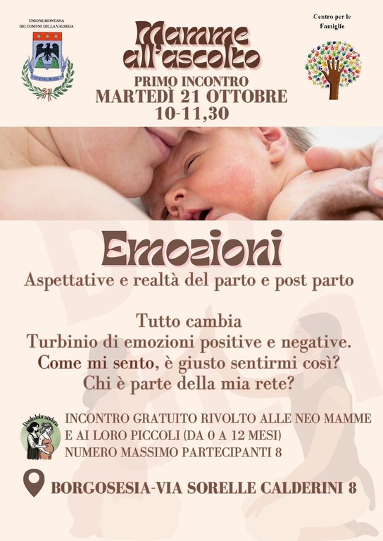 21 ottobre (ore 10-11.30) – Mamme all’ascolto: Emozioni – aspettative e realtà del parto e post-parto