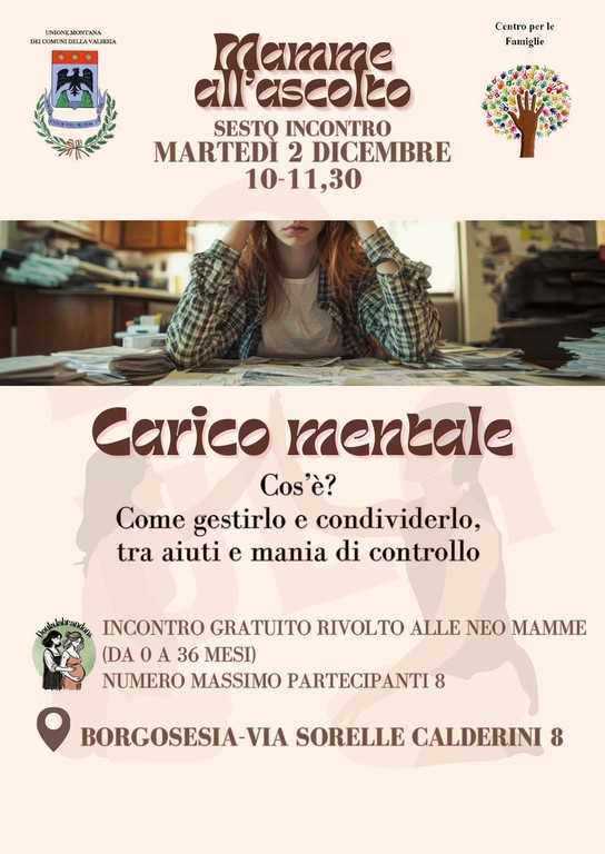 2 dicembre (ore 10-11.30) – Mamme all’ascolto: Carico mentale