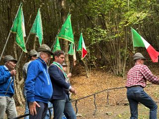 La cerimonia ha previsto un omaggio ai caduti presso la cappella della Bondaccia, al termine di una breve sfilata nei boschi, seguito da un momento di preghiera insieme a don Roberto di Borgosesia.
