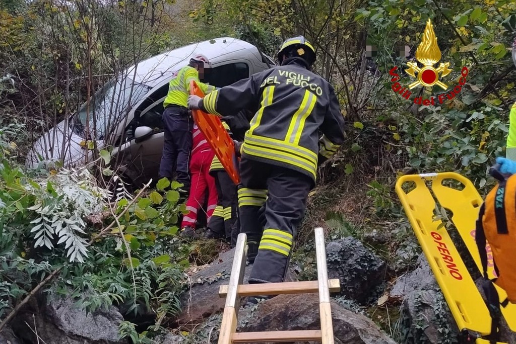 Un’autovettura, uscita di strada per cause in corso di accertamento, è precipitata per alcuni metri in un dirupo tra le rocce, rendendo complesse le operazioni di soccorso e di estricazione dell’anziano conducente, unico occupante del mezzo.