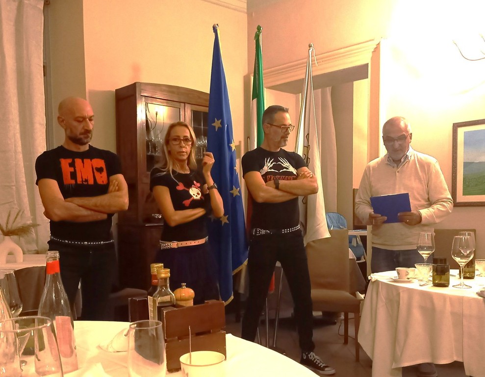 Il Trio si era fatto conoscere attraverso laboratori e cabaret, diventando poi famoso per lo sketch sugli Emo, nel programma televisivo Zelig. Nel 2011 diedero vita a tre personaggi decisamente bizzarri, vestiti di nero e con improbabili tagli di capelli: gli Emo da emozioni, sensazioni, in cui imitavano i ragazzi dark: “Quelli sempre tutti vestiti di nero, tristi tristi”. La serata al Rotary è stata la prima che ha visto gli Emo nuovamente “in scena”: con una parrucca grigia e i segni del tempo trascorso, hanno imbastito un dialogo tra il reale e il surreale, aggiornando i soci rotariani sugli ultimi quindici anni in cui sono diventati genitori: “A noi fa ridere quello che fanno i nostri figli: l’ironia è proprio nel contrasto”.