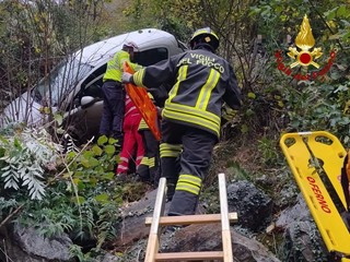 Auto precipita in un dirupo a Varallo: anziano salvato dai Vigili del Fuoc