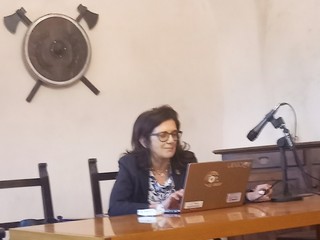 Dopo una breve digressione su alcuni restauri recenti la relatrice è poi passata ad illustrare il Sacro Monte di Oropa, l’ultimo dei Sacri Monti piemontesi ad essere riconosciuto come Riserva Speciale dalla Regione Piemonte (2005) e confluito nel 2012 nell’Ente di Gestione dei Sacri Monti, sorto a circa 1200 metri di altitudine, in stretta connessione con la Basilica antica. L’origine del santuario è legata, come per il santuario della Madonna di Crea, alla presenza di sant’Eusebio, evangelizzatore del Piemonte orientale e primo vescovo di Vercelli, che nella seconda metà del IV secolo avrebbe collocato in una caverna, al riparo dalle incursioni ariane, una statua in legno della Madonna, scolpita da san Luca, che aveva portato con sè dalla Palestina. Questa statua, oggi denominata Madonna Nera, tuttora veneratissima, in realtà è opera raffinata di uno scultore valdostano del tardo Duecento.