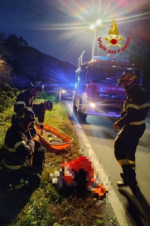 La squadra dei Vigili del Fuoco, giunta rapidamente sul posto, ha provveduto al recupero dell’infortunato impiegando tecniche SAF (Speleo Alpino Fluviale). Una volta riportato in superficie, il motociclista è stato affidato alle cure del personale sanitario, che gli ha prestato le prime assistenze e disposto ulteriori accertamenti.
