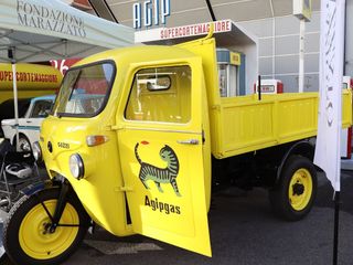 Lo stesso è stato nuovamente possibile fare nell’area esterna al padiglione 26, con l’ormai nota ma non per questo meno ammirata installazione che affianca alla stazione di servizio Agip il Fiat 682 N2 Supercortemaggiore e il motocarro Guzzi Ercole Agip Gas (questa volta accompagnati da una contemporanea Fiat 1100 carrozzata Fissore). Di nuovo, oltre a salire sui mezzi, i visitatori hanno potuto fare l’esperienza della visita e guida “virtuale”, tramite visori che li hanno trasportati in ambientazioni simulate, direttamente a bordo.