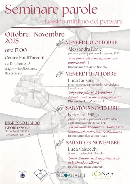 L’iniziativa è promossa in collaborazione con il Centro Studi Turcotti e gode del patrocinio di Jonas Italia, della Società Milanese di Psicoanalisi (SMP) e del Comune di Borgosesia.