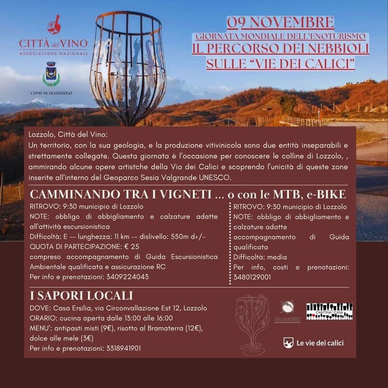 L’appuntamento è per domenica 9 novembre, con l’iniziativa “Il percorso dei Nebbioli sulle Vie dei Calici”, organizzata dal Comune di Lozzolo in collaborazione con l’Associazione Nazionale Città del Vino.