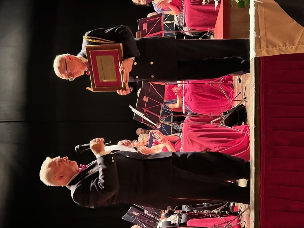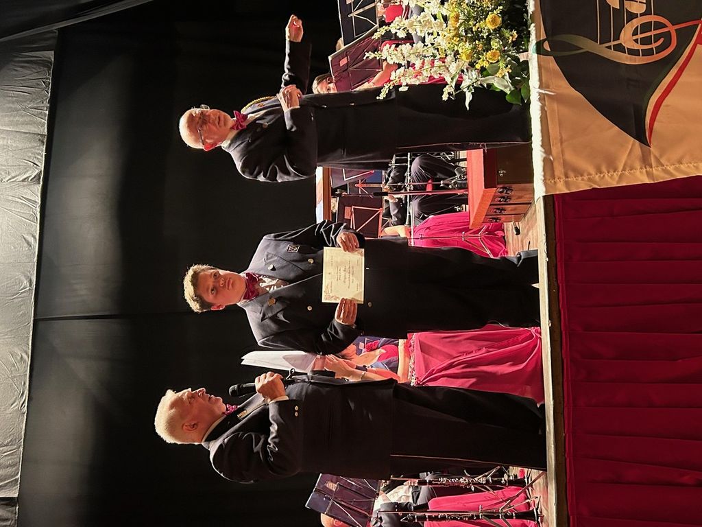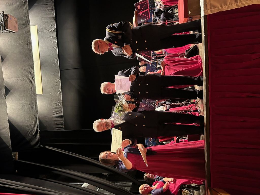 Nell’intervallo tra il primo e il secondo tempo, sono stati premiati due giovani nuovi allievi: Alessio Maffioli e Luca Orgiazzi. Sono stati poi assegnati i “premi alla carriera”: Stefano Sesia per i dieci anni di Banda, Lucia Costadone per i quindici anni, che si è presentata con Benedetta che sta ancora allattando, vent’anni per Gianpaolo Preti e la moglie Annamaria Cortese, trent’anni per Eraldo Bertolino. A sorpresa è stato conferito un premio speciale al Maestro Dario Colombo per i suoi quarant’anni di attività: “Ha battuto tutti i record dei precedenti Maestri che si sono susseguiti in più di duecento anni”.