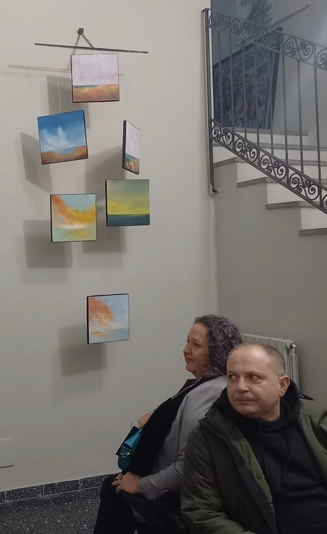 A Ghemme, il 21 novembre nelle sale espositive di Spazio E, Marina Chiocchetta ha presentato la personale di pittura di Massimiliano Rusconi, intitolata: “Vuoto”, titolo impegnativo, percepito non come privazione, ma come spazio libero da colmare con emozioni, colori, forme. Vuoto significa togliere tutto il superfluo per arrivare all’essenziale: concetto ripreso nell’allestimento in cui alcune serie di quadri sembrano librarsi nello spazio senza alcun punto di tangenza, in una tridimensionalità sospesa, che permette di dialogare fisicamente con le opere. La titolare di Spazio E, Enrica Pedretti, ha voluto creare un ossimoro con il titolo, riempiendo di significato gli spazi che accolgono le opere: raggruppate a creare nuovi dialoghi, allineate come semi gettati nel solco, sospese come anime che cercano di liberarsi. Rusconi si definisce: “Un’indole irrequieta che trova conforto nel disegno e nel colore. L’arte gli offre un’opportunità identitaria”, lavora accanto a persone fragili, compie azioni fisiche concrete come l’impastare la farina con l’acqua per ottenere qualcosa di diverso dalla semplice unione di due ingredienti: fa riassaporare il gusto della vita. Colma di colore le tele, proponendo nuovi itinerari con un percorso da scoprire, perché, solo voltando il quadro e leggendo ciò che sta scritto sul retro della tela, si colgono indizi, spunti. Invita a restare flessibili: solo così si può resistere ai venti avversi, riconquistando le posizioni che si credevano perdute. Spatola gli oli sulla tela circondandoli di pensieri: dipingere è il suo modo di pensare, ritrovare se stesso e il proprio ruolo, il contatto con la realtà. Il ritmo è importante, scandito come il 3/4 in musica: Marina Chiocchetta ha sottolineato che sono le opere a dover parlare e ha proposto una lettura dell’arte attraverso le parole come “orizzonte”, presente ma legato alle percezioni individuali, qualcosa che chiede di essere oltrepassato, ma non promette alcunché, “paesaggio”, astrazione per rappresentare le emozioni, mai antropizzato, ma ridotto a natura per depurarlo. Rusconi ha studiato e guardato molto per giungere a queste sintesi di pensiero, osservando il silenzio, che non è una semplice assenza di suoni, ma una condizione dello spirito. L’artista ora cerca il colloquio con chi osserva le sue opere, pone domande, ascolta risposte, offre un tassello d’arte per rintracciarlo ed un segnalibro come dono a chi lo incontra. La mostra sarà visitabile fino a gennaio 2026, da giovedì a domenica, ore 12 – 22, presso Spazio E, Via Interno Castello n. 7, a Ghemme.