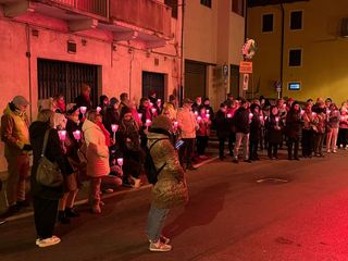 Grande partecipazione a Coggiola per la fiaccolata contro la violenza sulle donne. È l'iniziativa messa in campo dall'amministrazione comunale dal titolo “Camminata in Rosso”, inserita negli appuntamenti per la giornata del 25 novembre. Il corteo, partito ieri sera dalla panchina rossa del Municipio, ha percorso in silenzio tutta via Roma ed è poi giunto di fronte al palazzo della Biblioteca, illuminato di rosso per l'occasione.