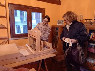 Alpacone oggi è un’azienda che tratta tutte le fasi del processo di lavorazione, dalla tosa alla realizzazione del prodotto finale: filati e prodotti finiti dalla morbidezza eccezionale, capi unici realizzati con grande gusto e creatività. Andrea continua a sperimentare e ha acquistato due macchine per fare le calze, che gli danno molta soddisfazione. Le socie hanno quindi potuto vedere le molteplici professionalità che entrano in campo per creare una stoffa ed un capo finito, apprezzando la chiarezza delle spiegazioni fornite e soprattutto l’entusiasmo con il quale questa famiglia ha raccontato il proprio lavoro che riflette una “filosofia di vita” dai ritmi umani.