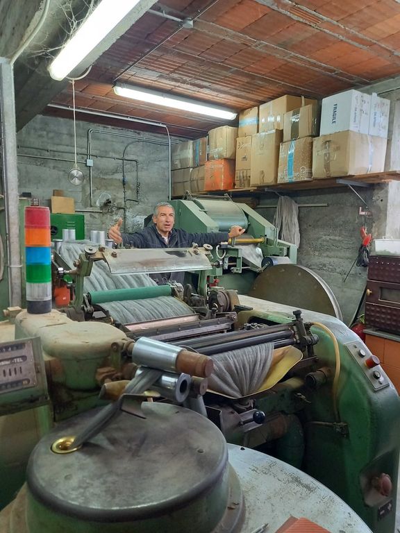 Al momento della prima tosatura lo spirito tessile di entrambi si è risvegliato: “Quando ci siamo ritrovati davanti ai primi tre sacchetti di vello abbiamo pensato come utilizzarlo e ci siamo messi a cercare macchinari che fossero adatti alla lavorazione di piccoli lotti, con l’obiettivo di realizzare una filiera completa”. Nel 2018 Andrea lascia la fabbrica tessile per la quale lavorava, Nadia abbandona le traduzioni in cinese per dedicarsi completamente a questa impresa, scoprendo un modo nuovo per vivere e condividere valori ed emozioni. Iniziarono il loro esperimento con una vecchia carda costruita nel biellese, recuperando macchinari dismessi e adattandoli alle loro esigenze di lavorazione di piccole quantità di filato, apportando anche alcune modifiche tecniche necessarie per le loro finalità. Il filatoio trasforma il nastro in filo.