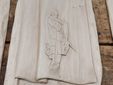 Nella parte inferiore, il ponte Antonini, con le due arcate principali, lo stemma e il fregio, riprodotti attraverso tecniche che simulano la texture della pietra, ottenuta bocciardando il legno con un punteruolo.