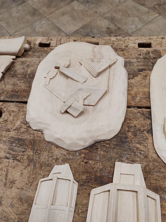Gli studenti hanno impiegato tecniche tradizionali di falegnameria, tra cui incastri a coda di rondine, impiallacciatura in noce nazionale e scultura a tutto tondo per il logo. La chiusura dell’armadio è stata progettata appositamente, mentre la finitura finale è stata ottenuta con una patina antica applicata a mano in tre passaggi.